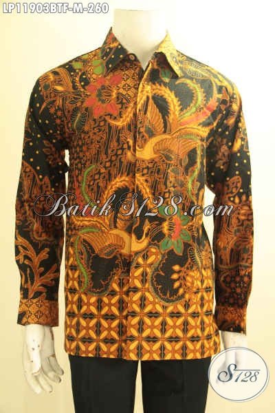 Sedia Kemeja Batik Solo Elegan Model Tangan Panjang, Busana Batik Solo Nan Berkelas Daleman Full Furing, Bahan Halus Motif Klasik Kombinasi Tulis Tampil Tampan Berkelas [LP11903BTF-M]