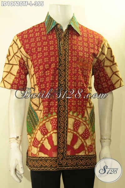 Sedia Kemeja Batik Tulis Untuk Pria, Hem Batik Lengan Pendek Size L Full Furing Motif Sinaran,Tampil Elegan Berkelas [LD10720TF-L]