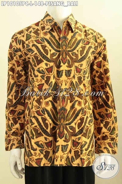 Sedia Kemeja Kerja Bahan Batik Model Lengan Panjang, Pakaian Batik Solo Halus Bahan Adem Proses Print Colet Motif Pisang Bali, Elagan Buat Kondangan [LP10105PC-L]