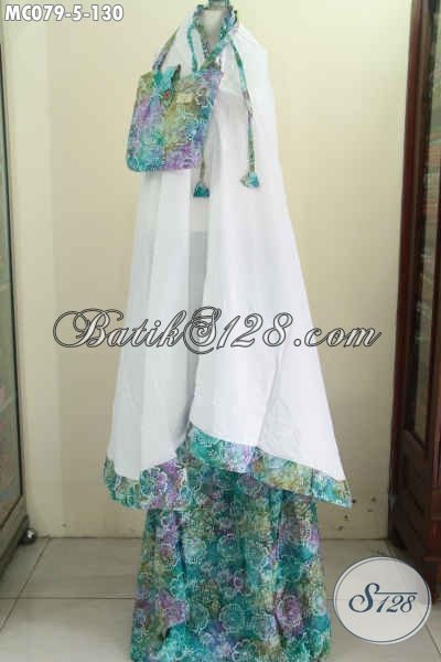 Sedia Mukena Batik Trendy Untuk Dewasa, Atasan Berbahan Santung Halus Berpadu Batik Cap Motif Keren Warna Gradasi [MC079-Dewasa]