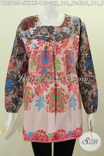 Sedia Pakaian Batik Blus Halus Proses Printing Motif Keren, Baju Batik Dua Warna Lengan Panjang Tanpa Kerah, Modis Buat Pesta Dan Busana Kerja [BLS5832P-S , XL , XXL]
