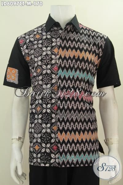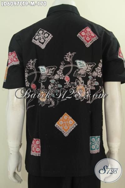Sedia Pakaian Batik Cap Tulis Dasar Hitam Motif Kombinasi, Baju Batik Halus Model Lengan Pendek Kwalitas Istimewa Untuk Penampilan Lebih Gagah Dan Macho [LD6097CT-M]