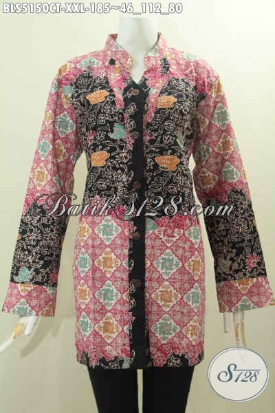 Sedia Pakaian Batik Halus Kwalitas Premium, Baju Blus Batik Wanita Gemuk Size XXL Bahan Adem Proses Cap Tulis Model Kerah Shanghai Kancing Depan Untuk Tampil Lebih Berkelas [BLS5150CT-XXL]
