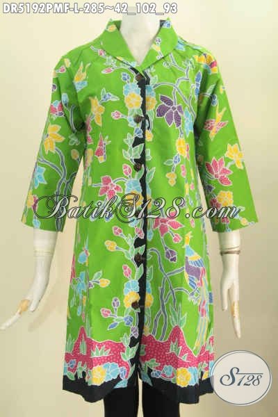 Sedia Pakaian Batik Hijau Pupus Motif Bunga, Busana Batik Berkelas Model Kerah Langsung Full Furing Tricot Bahan Adem Kombinasi Tulis Di Jual Online Harga Grosir [DR5192PMF-L]