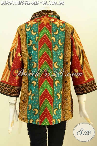 Sedia Pakaian Batik Kerja Atasan Untuk Cewek, Blus Klasik Motif Sinaran Proses Tulis Daleman Full Tricot Harga 435K [BLS7719TF-XL]