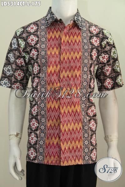 Sedia Pakaian Batik Lengan Pendek Untuk Pria Size L, Hem Batik Solo Cap Tulis Modis Motif Kombinasi Untuk Kerja Bisa Buat Hangouts Juga Keren [LD5314CT-L]