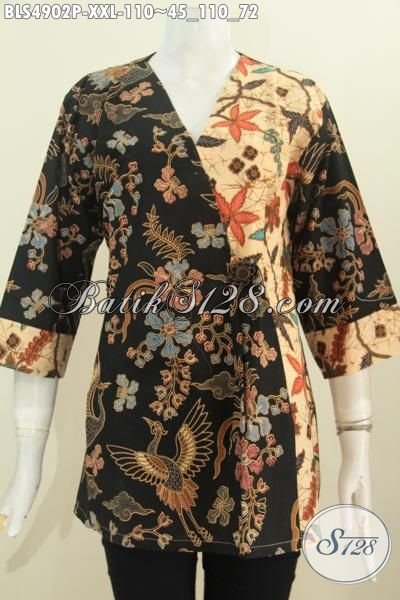 Sedia Pakaian Batik Lengan Tiga Perempat, Pakaian Batik Halus Proses Printing Warna Klasik Bahan Adem Model Kimono Exclusive Untuk Cewek Gemuk Size 3L [BLS4902P-XXL]