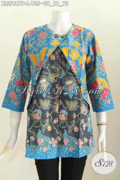 Sedia Pakaian Batik Modis Halus Dan Berkelas, Baju Blus Lengan Panjang Buatan Solo Desain Kombinasi Rompi Motif Bagus Proses Printing Untuk Tampil Mempesona [BLS5987P-L]
