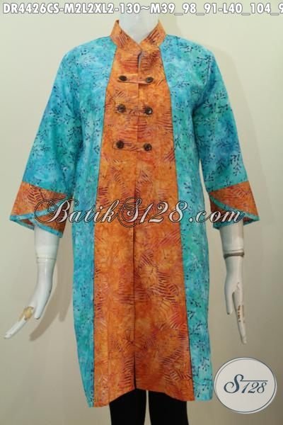 Sedia Pakaian Batik Modis Halus Desain Istimewa Dan Modern, Baju Batik Masa Kini Model Dress Kombinasi 2 Motif Cocok Untuk Pesta Dan Jalan-Jalan Proses Cap Smoke [DR4426CS-L]