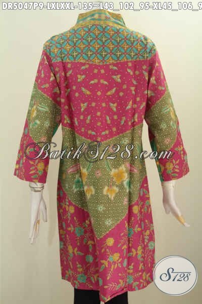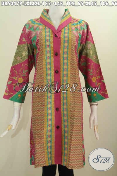 Sedia Pakaian Batik Online Untuk Wanita, Baju Batik Model Dress Terkini Dengan Kerah Langsung Berpadu Dengan Motif Klasik Nan Mewah Proses Printing Harga Terjangkau [DR5047P-XXL]