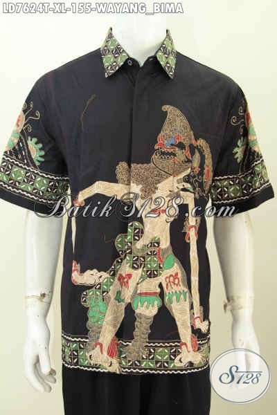 Sedia Pakaian Batik Pria Size XL, Baju Batik Pria Dewasa Lengan Pendek Motif Wayang Bima Harga 155K Proses Tulis Buatan Solo Asli [LD7624T-XL]