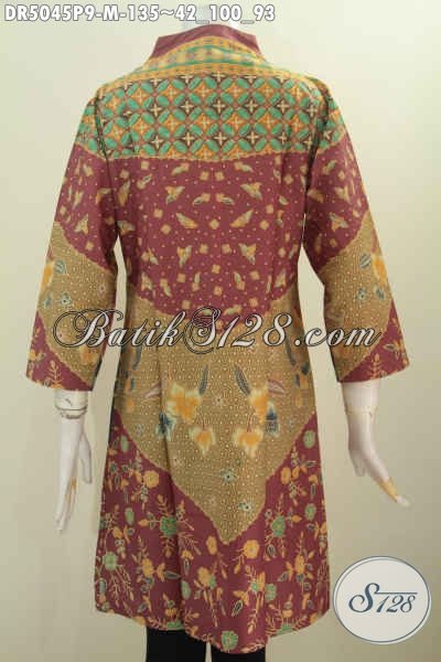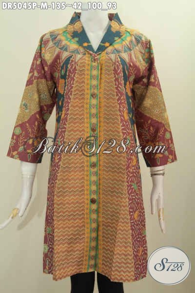 Sedia Pakaian Dress Batik Keren Halus Proses Printing, Baju Batik Istimewa Buatan Solo Bahan Adem Model Kerah Langsung Untuk Kerja Dan Pesta Formal [DR5045P-M]