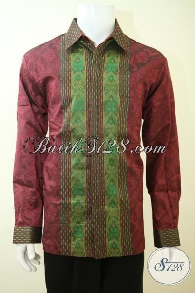 Sedia Pakaian Tenun Bagus Keren Dan Mewah, Baju Tenun Lengan Panjang Warna Merah Pas Buat Pria Muda Maupun Dewasa [LP3431NF-XL]