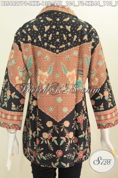 Sedia Produk Pakaian Batik Wanita Model Terkini, Baju Blus Batik Kerah Kotak Motif Klasik Proses Printing Untuk Kerja Dan Rapat Berbahan Halus Nyaman Di Pakai [BLS4827P-XXL]