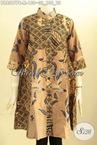 Sedia Tunik Batik Dress Lengan 7/8 Dengan Desain Krah Shanghai Di Lengkapi Kancing Depan Berpadu Dengan Motif Unik Nan Berkelas Proses Printing Cabut, Cocok Untuk Acara Resmi [DR8567PB-M]