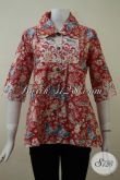 Blus Batik Merah Motif Modern