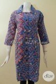 Baju Biru Batik Dress Lengan T