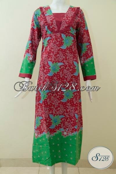 Tempat Belanja Busana Batik Online Terpercaya, Sedia Baju Gamis Batik Model Terbaru Warna Merah Kombinasi Hijau Dan Motif Yang Keren, Cocok Untuk Perempuan Berhijab Di Pakai Lebaran [G1708P-S]