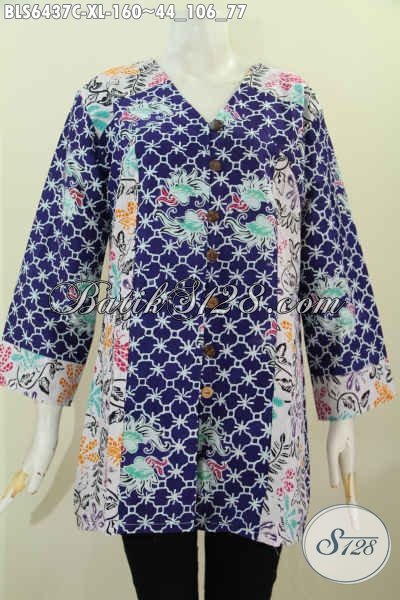 Tempat Update Fashion Batik Wanita Karir, Jual Blus Kerah V Bahan Halus Kombinasi 2 Motif Kwalitas Istimewa Hanya 100 Ribuan [BLS6437C-XL]