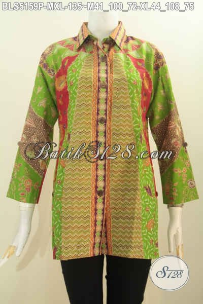 Toko Baju Batik Online, Jual Blus Hijau Muda Proses Printing Motif Bagus Model Kerah Kemeja Berbahan Adem Yang Nyaman Di Pakai Serta Trendy Harga 135 Ribu [BLS5159P-M , XL]