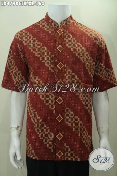 Toko Baju Batik Online Jual Eceran Harga Grosir Baju Batik Kerah Shanghai Warna Merah Lengan Pendek Proses Cap Tulis Kwalitas Halus Motif Parang [LD4798CTK-XL]