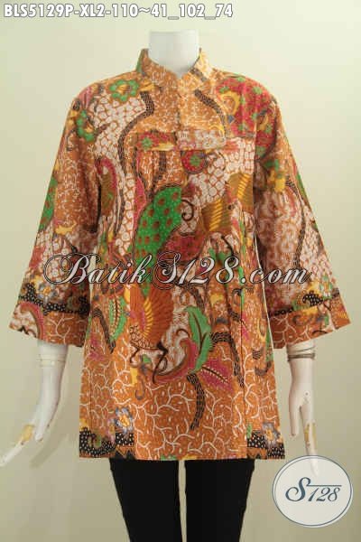 Toko Baju Batik Online Koleksi Paling Up To Date, Sedia Baju Blus Kerah Shanghai Tanpa Kancing Desain Berkelas Motif Elegan Proses Printing Hanya 110K, Untuk Wanita Dewasa [BLS5129P-XL]