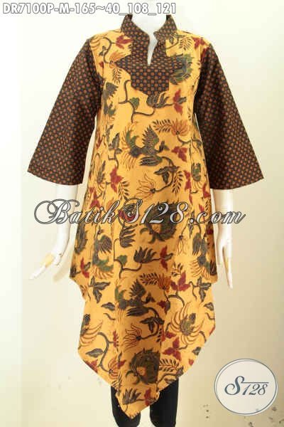 Toko Baju Batik Online Langganan Pegawai, Sedia Dress Klasik Bahan Batik Printing Halus Model Bawah Lancip, Penampilan Makin Trendy [DR7100P-M]