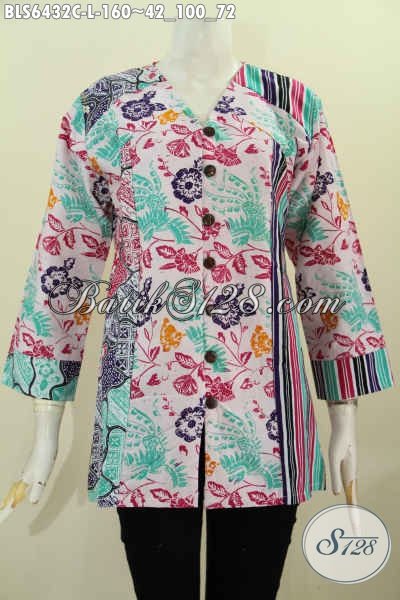 Toko Baju Batik Online, Sedia Blus Batik Kerah V, Baju Batik Solo Kombinasi 2 Motif Proses Cap Di Online 160K [BLS6432C-L]
