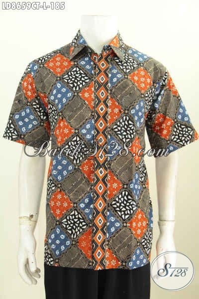 Toko Baju Batik Online Sedia Hem Lengan Pendek Kotak-Kotak Denagn Kombinasi Motif Trendy Dan Unik Cap Tulis Bikin Penampilan Makin Menarik [LD8659CT-L]