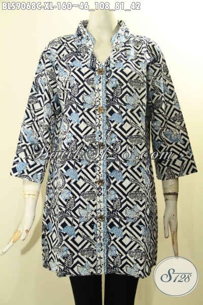 Toko Baju Batik Wanita Online Koleksi Terlengkap, Sedia Blouse Lengan 3/4 Kancing Depan, Bahan Adem Motif Bagus Proses Cap, Cocok Banget Untuk Kerja Dan Jalan-Jalan [BLS9068C-XL]