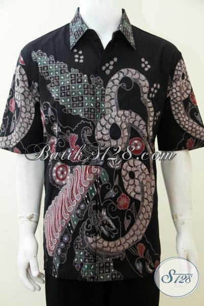Toko Batik Online Di Solo Jual Kemeja Batik Trendy Motif Naga, Hem Batik Lengan Pendek Warna Hitam Cowok Bisa Tampil Modis Dan Elegan [LD2977T-XL]