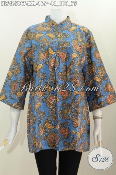 Toko Batik Online Jual Blus Kerah Shanghai Tanpa Kancing, Baju Batik Istimewa Ukuran Jumbo Spesial Buat Perempuan Gemuk Tampil Trendy Dan Modis, Berbahan Halus Proses Cap Tulis Harga 165K [BLS4658CT-XXL]