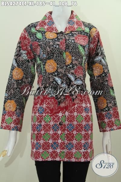 Toko Batik Online Langganan Para Pegawai, Sedia Blus Batik Motif Bunga Kwalitas Istimewa Proses Cap Tulis, Baju Batik Kerah Kotak Istimewa Untuk Kerja [BLS4274CT-XL]