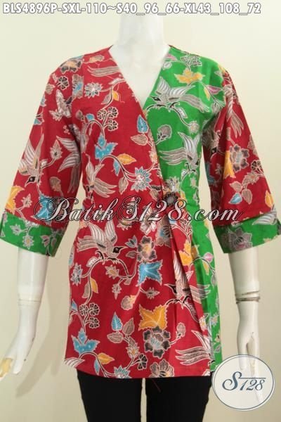 Toko Batik Online Paling Up To Date, Jual Blus Batik Kimono Kombinasi Warna Merah Dan Hijau, Baju Batik Modern Motif Trendy Bahan Halus Proses Printing Harga Grosir [BLS4896P-S , XL]