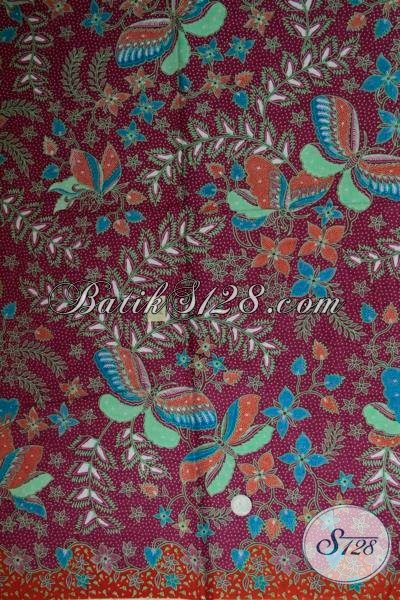 Toko Batik Online Terlengkap Di Solo, Jual Kain Batik Trendy Motif Bunga Dan Kupu Dengan Warna Dasar Merah Hati Keren Dan Elegan Untuk Blus Batik Perempuan Karir [K1547P]