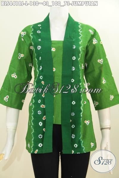 Toko Batik Solo Modern Jual Online Blus Batik Hijau Motif Jumputan Proses Printing, Produk Busana Batik Wanita Terkini Desain Istimewa Untuk Penampilan Lebih Mempesona [BLS4418J-L]
