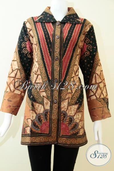 Toko Batik Solo Online Lengkap Murah Terpercaya, Sedia Blus Batik Busana Kerja Model Resmi Mewah Elegan Berkelas [BLS1476T-XL]