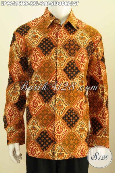 Toko Busana Batik Online Jual Hem Batik Cap Tulis Motif Klasik Sidodrajat Lengan Panjang Pake Furing, Bikin Penampilan Pria Gemuk Lebih Berkelas [LP9346CTRF-XXL]