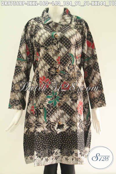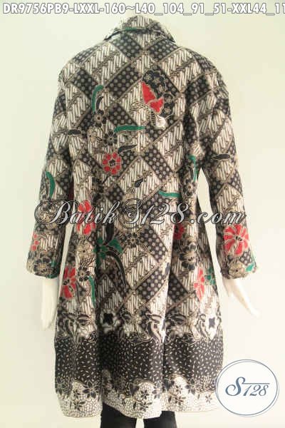 Toko Busana Batik Online Paling Laris, Sedia Dress Batik Modern Buatan Solo Asli Model Kerah Lengan 7/8 Kancing Depan Sampai Bawah, Pilihan Tepat Untuk Penampilan Lebih Berkelas [DR9756PB-L]