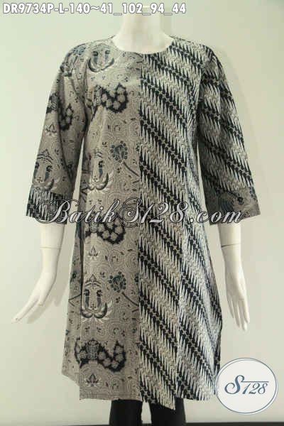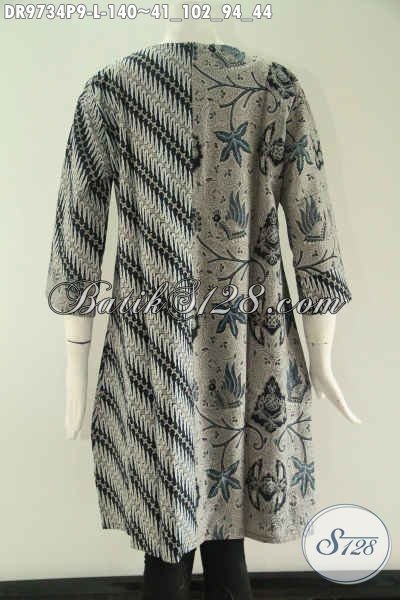 Toko Busana Batik Online Pilihan Terlengkap, Jual Dress Kombinasi 2 Motif Model Tanpa Krah Khas Jawa Tengah, Berbahan Halus Lengan 7/8 Pakai Resleting Belakang Tampil Makin Gaya [DR9734P-L]