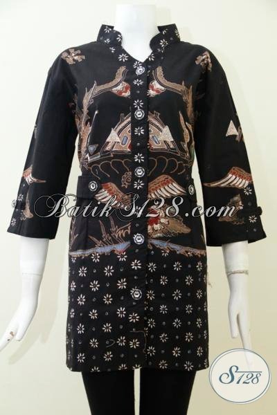 Toko Busana Batik Wanita Online Terlengkap, Sedia Blus Batik Cap Tulis Warna hitam Dilengkapi Daleman Full Furing Memberi Kesan Mewah Berkelas [BLS1979CTF-XL]