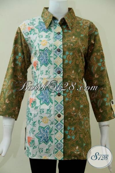 Toko Oleh-Oleh Batik Solo Online, Jual Blus Batik Kombinasi Dua Warna Dua Motif Unik Lebih Trendy Dan Stylish [BLS1619C-XL]