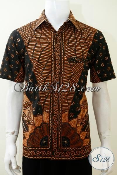 Toko Online Aneka Batik Solo, Jual Hem Batik Lengan Pendek Motif Matahari, Busana Batik Tulis Halus Mewah Pria Tampil Berkarakter [LD3050T-M]