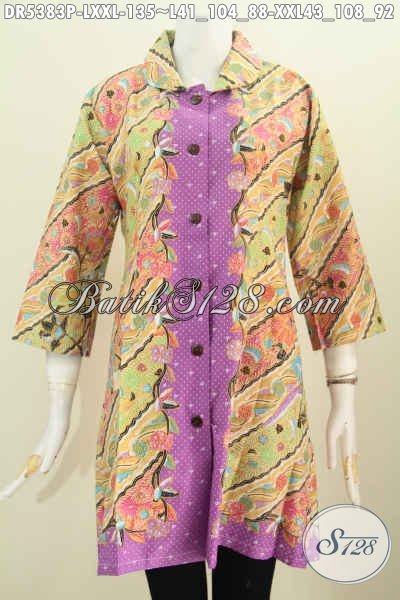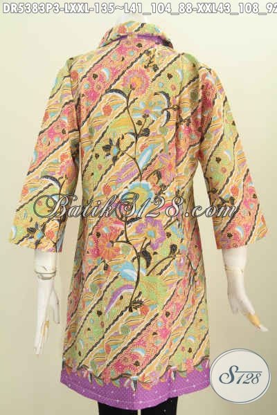 Toko Online Aneka Produk Batik Solo, Jual Baju Dress Kerah Bulat Motif Pagi Sore Proses Printing Buat Wanita Kantoran Yang Ingin Tampil Cantik Mempesona [DR5383P-L , XXL]