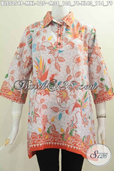 Toko Online Aneka Produk Batik Terkini, Sedia Blus Atasan Kerah Model A Dengan Kancing Depan Keren Untuk Kerja Dan Jalan-Jalan [BLS5254P-M , XL]