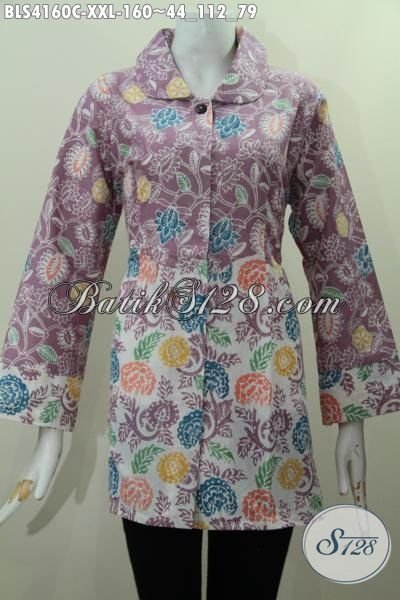 Toko Online Batik Jawa Paling Up To Date, Sedia Blus Batik Jumbo Model Kerah Bulat Motif Bunga Proses Cap Cocok Untuk Cewek Gemuk, Di Jual Dengan Harga Grosir [BLS4160C-XXL]