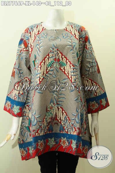 Toko Online Batik Jawa Tengah Lengkap, Sedia Blus Tanpa Krah Nan Elegan Bahan Adem Proses Printing Hanya 140K [BLS7766P-XL]