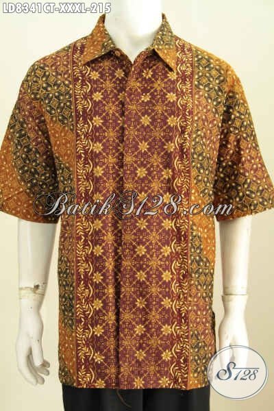 Toko Online Batik, Sedia Baju Batik Kantoran Pria Gemuk Sekali, Hem Batik Lengan Pendek Halus Motif Berkelas Proses Cap Tulis Harga 215K [LD8341CT-XXXL]