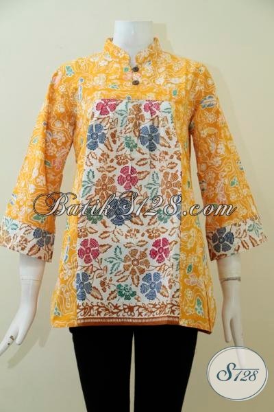 Toko Online Batik Sedia Pakaian Blus Batik Kuning Ukuran Medium Dengan Desain Dan Kombinasi Motif Yang Lebih Berkelas [BLS1940C-M]