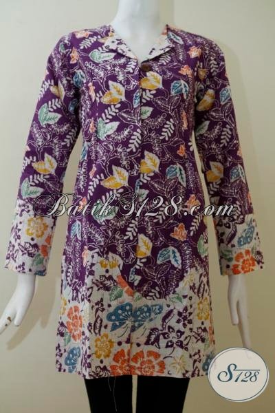 Toko Online Batik Solo Hadir Dengan Koleksi Terbaru Blus Batik UnguBerpadu Warna Putih Dan Motif Modern Untuk Wanita Muda Maupun Dewasa [BLS2034C-S]